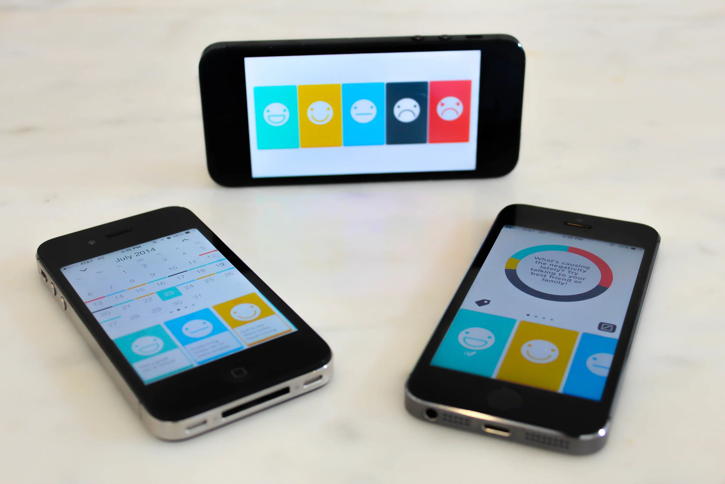 In the beginning, we were focused on developing and designing an app similar to a popular competitor called Mr. Mood. The app lets you swipe through 5 simple faces to choose how you’re feeling at the end of the day.